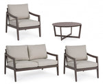 aluminio con recubrimiento de polvo (poliéster). asiento y respaldo en textileno. cojines con funda desenfundable en tejido olefina (100% polipropileno). pies ajustables. tornillos de acero inoxidable. armar.