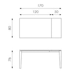 Dimensiones: 80 cm x 120/170cm H. 76 cm