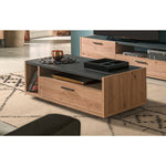 Estructura, compartimentos y frente de cajón realizados con Panel Ecológico de 22 mm de espesor con acabado roble miel.