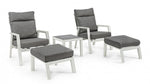 La mesa lunar de Kledi es un elemento de muebles versátil y elegante que se adapta a diferentes espacios y estilos de suministro. Su estructura está hecha de aluminio recubierto de polvo, lo que da resistencia y durabilidad a la mesa.