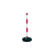 Postes delimitadores de cadena para gestión de colas, base rellenable con agua o arena para mayor peso y por tanto mayor estabilidad, casquillo de 4 puntos, cuerpo rojo y blanco apto para señalización, altura poste 90cm. marca parpadeante