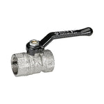 Serie ARIZONA. Válvula de bola de latón de diámetro interior estándar. Hembra/Hembra con palanca de aluminio. Rosca ISO 228/1 según norma EN13828. Límites de temperatura: -20° + 120°.