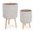 El Set2 P.Vaso Rigo a Treppiede Beige está compuesto por dos recipientes al aire libre hechos de fibra de arcilla y equipado con tres patas de madera. Las piernas del jarrón deben ensamblarse, lo que le permite personalizar la altura de la olla de acuerdo con sus necesidades.