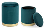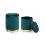 Conjunto de 2 Pufs de terciopelo con contenedor Azul POLINA