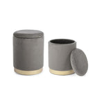 Conjunto de 2 Pufs de terciopelo con contenedor Gris POLINA