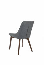 La silla está hecha con materiales de alta calidad para garantizar la durabilidad y la resistencia con el tiempo. El recubrimiento de tela gris oscuro agrega un toque de elegancia, mientras que las piernas de nuez mutua dan solidez y estabilidad.