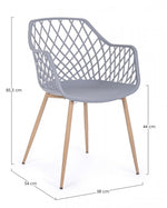 Patas de acero pintadas de madera natural. Asiento de plástico (PP). Piernas para ensamblar. Medidas = 58a - 54b - 85.5h - 44h1