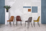 Cubro suave de tacto, patas de metal. Disponible con recubrimiento gris claro y piernas negras. La silla mide 52 cm de ancho, 45 cm de profundidad y 85 cm de altura.