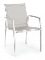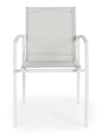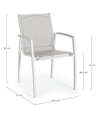 Estructura de aluminio, polvo pintado (poliéster). 2x1 asiento de textileno y espalda. Apilable. Medidas = 56.5a - 61b - 87h - 46.5h1 - 66h2