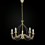 Araña de hierro marfil decapè cinco luces oro 61x H45 cm