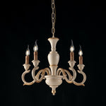 Araña de madera marfil y hoja de oro cinco luces 50x H50 cm
