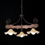 Araña de nogal de madera y antigua tres luces de vidrio 80x H50 cm