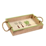Bandeja de madera blanca verde con asas rectangulares de cuerda cm30x20h5