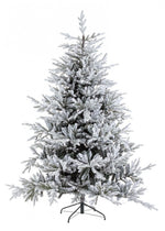 Árbol Nevado. Estructura de ramas y base de metal. Material de las agujas de PE impreso por inyección y PVC. Fácil apertura tipo paraguas. Requiere ensamblaje.