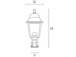 Soporte de aluminio fundido con difusores de vidrio transparente. Ideal para iluminar tu jardín o espacio exterior. El diámetro del soporte es de 60 mm y la altura máxima de la lámpara es de 170 mm. La lámpara funciona con una alimentación de 230 V ~ 50 Hz y tiene una potencia máxima de 60W. El dispositivo de conexión está incluido para una fácil instalación. La clase de protección es IP43, garantizando una protección adecuada contra los agentes atmosféricos.