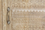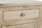 - Estructura de madera de mango con decoraciones con incrustaciones de mano, espalda y fondo de cajones en MDF;
