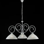 Candelera de hierro blanco en mal estado Tres luces putas en vidrio de alabastro blanco 78x H54 cm