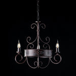 Candelera de hierro lacado negro con decoración de óxido 3 luces con frisos