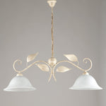 Candelera de suspensión en oro de hierro dorado dos luces de alabastro blanco 93x H34 cm