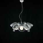 Candelera de suspensión en hierro blanco gris cuatro luces 66x H28 cm