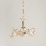 Candelera de suspensión en hierro de oro marfil de oro blanco Cinco luces 60x H47 cm