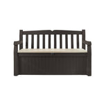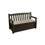 Cofre de resina con acabado de efecto de madera, marrón con asiento beige