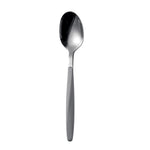 La forma alargada es una característica de esta cubertería que presenta, en los mangos, colores llenos, opacos y transparentes.
