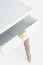 - Cajones frontales en Paulonia (con decoración injuriada a mano) y MDF;