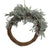 Estructura de madera recubierta de piñas y objetos de fibra sintética