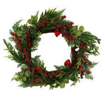 Corona de 50 cm con plástico verde/hojas de tela/bayas rojas/campana de metal