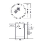 - Dimensiones del fregadero: diámetro 43,5 cm