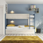 Dormitorio con litera con cama de color blanco extraíble y azul reversible