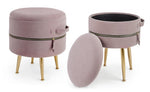 Dos Pouf Pouf set con la apertura    Estructura en MDF y compensado Patas de acero cromado de cromo dorado Efecto de terciopelo recubrimiento de poliéster con cremallera decorativa Densidad de relleno de 30 kg/m3...