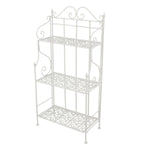 La estructura es de metal, con 3 baldas de estilo rústico. Se caracteriza por un color blanco y decoraciones con rizos.