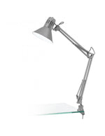 La abrazadera colocada en la base, el brazo articulado y el difusor orientable permiten iluminar eficazmente el escritorio en un punto de interés concreto.