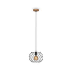 Lampada sospensione Ø 30 cm, 40 W, nero e legno