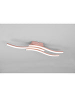 La lámpara de techo ROUTE de Trio Lighting tiene una estructura de metal en color oro rosa, tres varillas paralelas ligeramente onduladas.