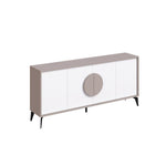 El Madia Gora 180x35.6x82 cm de mocha ligera con puertas blancas es un mueble elegante y funcional que agregará estilo y practicidad a su espacio vital. Con su ligera estructura de color moca y las puertas blancas, este aparador se adapta perfectamente a cualquier mueble. Los pies negros dan un toque de modernidad y estabilidad.