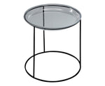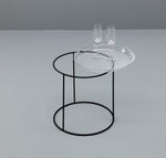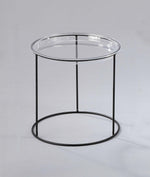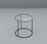 Mesa con tapa de vidrio templado y base negra 40x40 cmMaterial:Top: vidrio templado Metal baseColor: Arriba: transparente Base: negroDimensiones: Ø.40cm x Ø.40cm H. 37.5cm