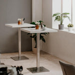Mesa cuadrada alta H.105 cm Top blanco y base cromada