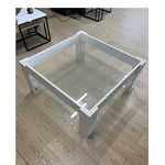 Mesa de café de la sala de estar blanca con doble estante de vidrio hogareño