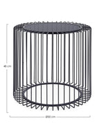 Estructura de acero inoxidable con polvo epoxi. Top de vidrio templado. Medidas = Ø50a - 48h