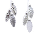 Pigna de vidrio mate brillante mezcla de purpurina. Perfecta decoración navideña para tu hogar. Tiene una altura de 6 cm y un diámetro de 2.5 cm.