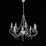 Ocho luces de la lámpara de hierro blanco decoración en mal estado y diamantes de imitación 80x H75 cm