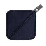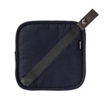 - El agarrador garantiza una excelente protección contra el calor y está adornado con un ojal que se puede abrir con un botón automático de metal para poder colgarlo sin el uso de ganchos;