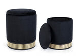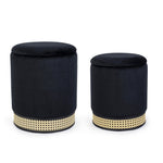 - Efecto de terciopelo recubrimiento de poliéster. Con decoración en el cuero de imitación (PU) y ratán sintético.