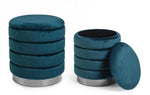 El contenedor Set2 Pouf Darina Navy está compuesto por dos Poufs con MDF y estructura compensada. El recubrimiento de poliéster del efecto terciopelo ofrece una apariencia elegante y refinada, adecuada para cualquier tipo de entorno y muebles.