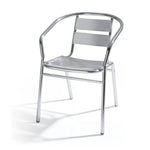 Silla de aluminio apta para bares, restaurantes, terrazas y balcones.