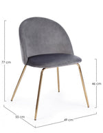 - Atrás y asiento acolchado en espuma de poliuretano y cubierto de terciopelo (100% de poliéster)
