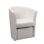 Sillón acolchado tapizado en ecopiel blanca y puf desenfundable.